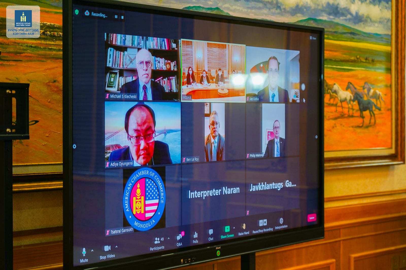 Уулзалтад оролцож, хууль зүйн салбарын шинэчлэл, хуулийн төслүүдэд бизнес эрхлэгчдийн саналыг хэрхэн тусгах, АНУ болон Монгол Улс хооронд байгуулсан Ил тод байдлын гэрээний хэрэгжилтийн талаар цахим хуралдаанд оролцогчдод мэдээлэл хүргэж, гадаад дотоодын хөрөнгө оруулагчидтай санал солилцлоо.