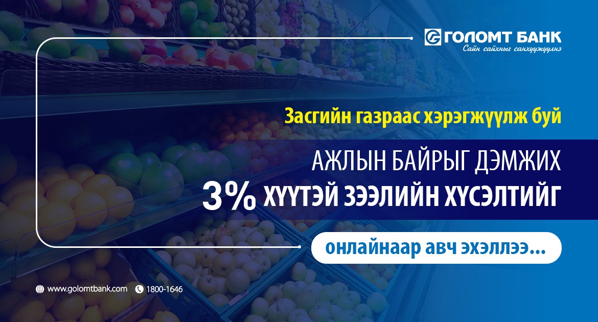 Голомт банк “Ажлын байрыг дэмжих” 3%-ийн хүүтэй зээлийн хүсэлтийг онлайнаар авч эхэллээ