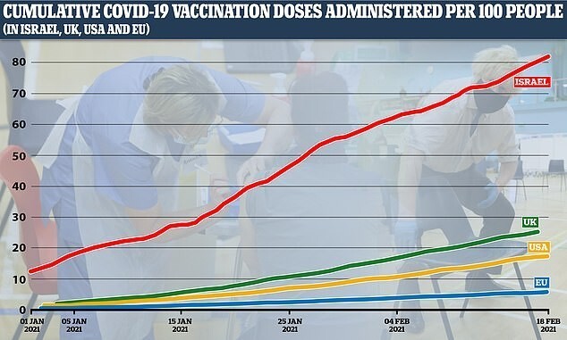 Хүн амаа ковидоос хамгаалах дархлаажуулалтыг хамгийн идэвхтэй сайн хийж байгаа орон бол Израиль. Тус улсад одоогийн байдлаар хүн амын 47 хувь буюу 4,23 сая хүн вакцинжуулалтад хамрагдаад байна. Үүнээс 2,85 сая хүн хоёр дахь вакцинаа хийлгээд байгаа.