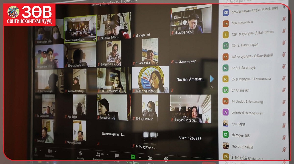 Сонгинохайрхан дүүргийн боловсролын хэлтэс цахим хурал зарлаж, ерөнхий боловсролын сургууль болон сургуулийн өмнөх боловсролын байгууллагын удирдлагуудтай цахимаар хуралдлаа.