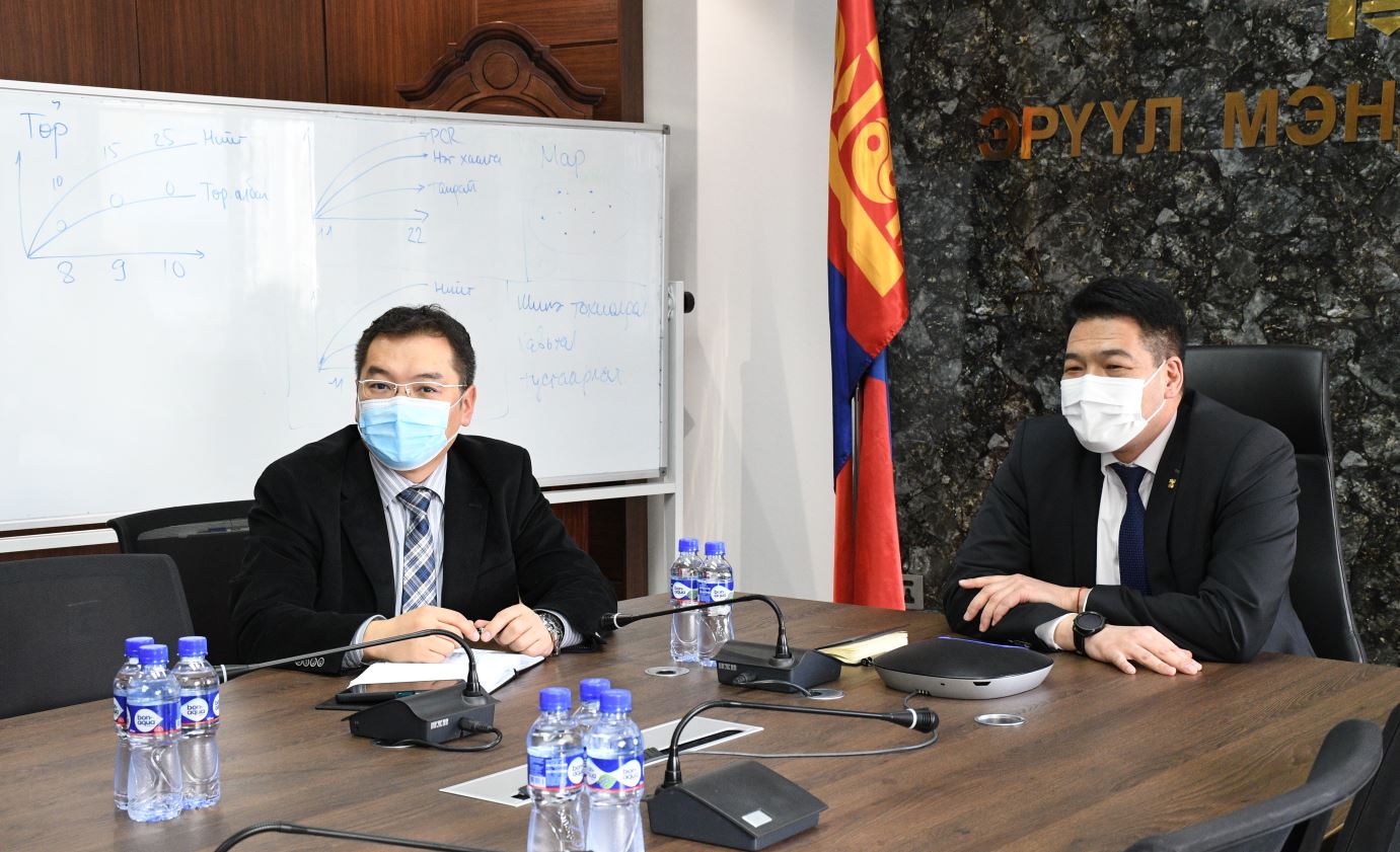 Эрүүл мэндийн сайд С.Энхболд дүүргийн эмнэлгийн удирдлагуудтай цахимаар уулзсны дараа нэгдсэн эмнэлгийн удирдлагатай холбогдож Нэг хаалга-Нэг шинжилгээ нэгдсэн арга хэмжээний талаар санал солилцов.