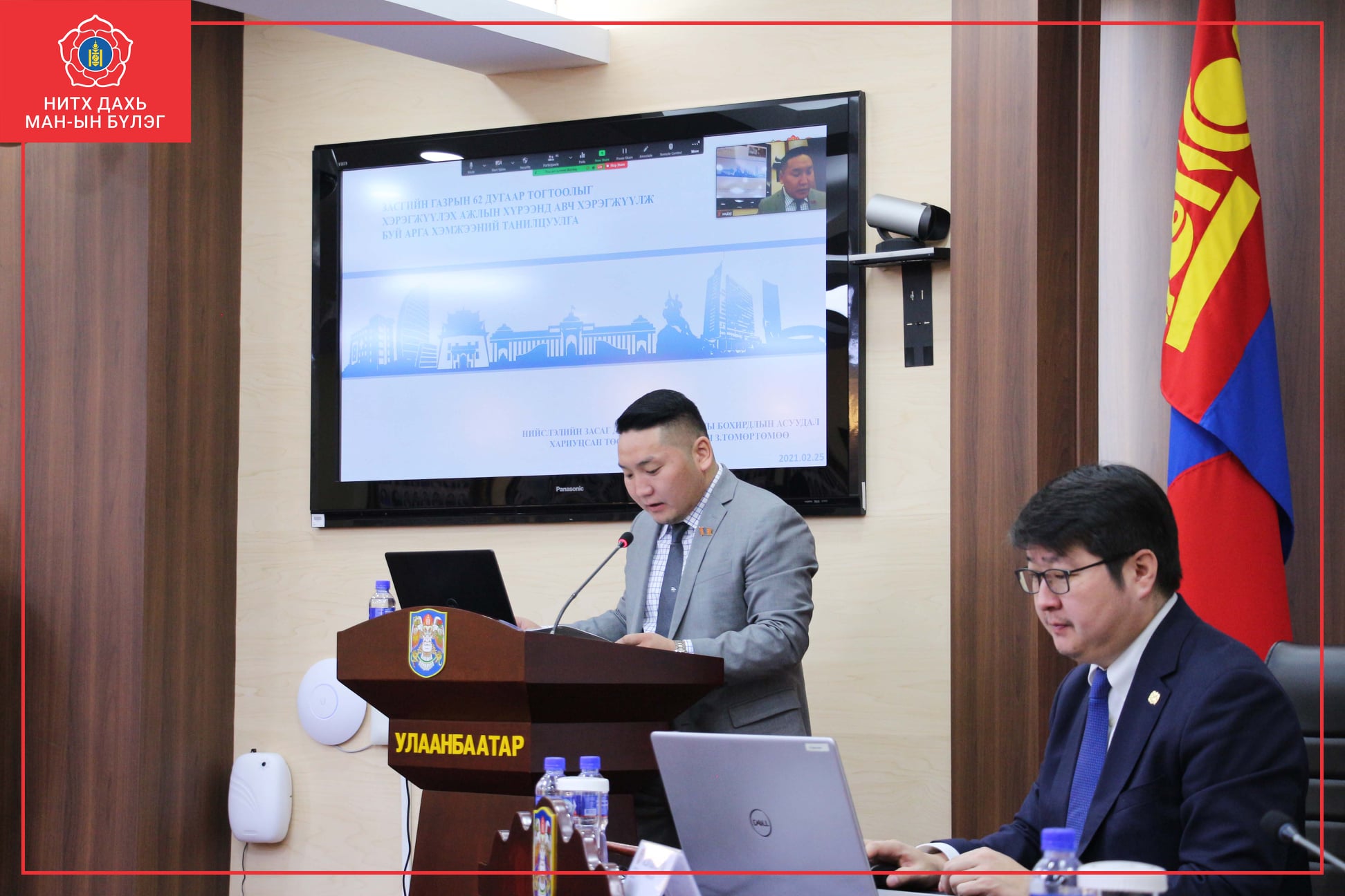 Засгийн газрын 62 дугаар тогтоолыг хэрэгжүүлэх ажлын хүрээнд авч хэрэгжүүлж буй арга хэмжээний танилцуулгыг Нийслэлийн Засаг даргын Агаар, бохирдлын асуудал хариуцсан төслүүдийн удирдагч З.Төмөртөмөө танилцууллаа.