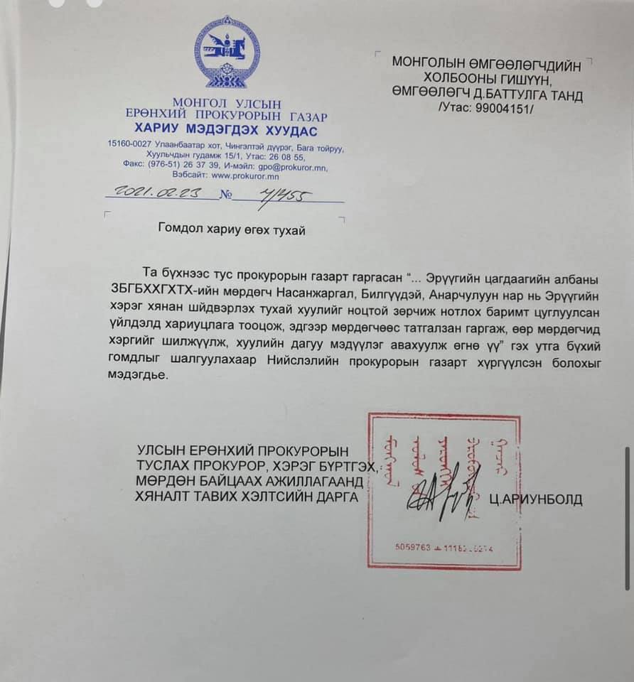 Прокурорыг өөрийг нь шалгахад гэмгүй шүү. Даалгавар авч л Цагдаа руу дайрч байгаа байх даа.