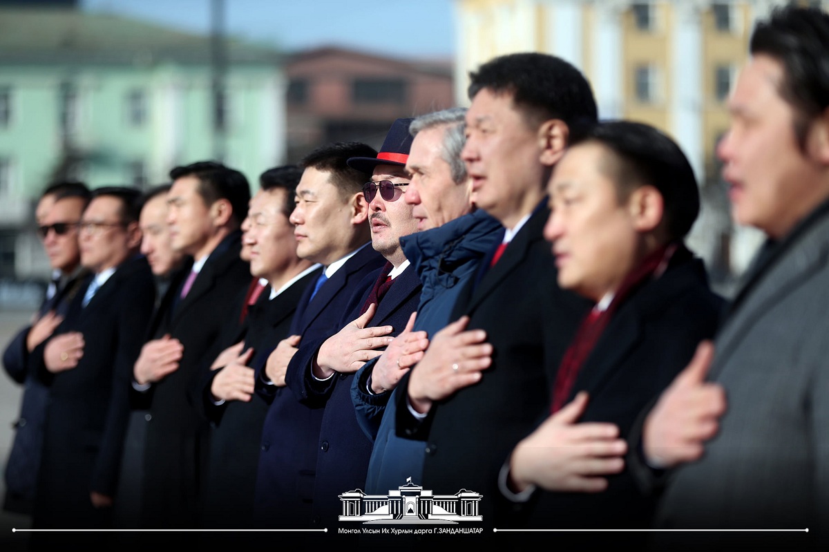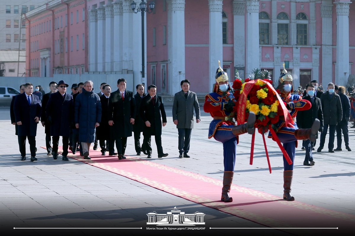 Монгол Улсын Ерөнхий сайд Л.Оюун-Эрдэнэ, УИХ-ын дарга Г.Занданшатар, МАН-ын дарга У.Хүрэлсүх, МАХН-ын дарга Н.Энхбаяр нар Жанжин Сүхбаатарын хөшөөнд цэцэг өргөж, Эзэн Чингис хааны хөшөөнд хүндэтгэл үзүүллээ. Энэ үеэр тэдний хэн нь ч хэвлэлд байр сууриа илэрхийлээгүй ба хамтдаа алхсаар Төрийн ордон руу оров.