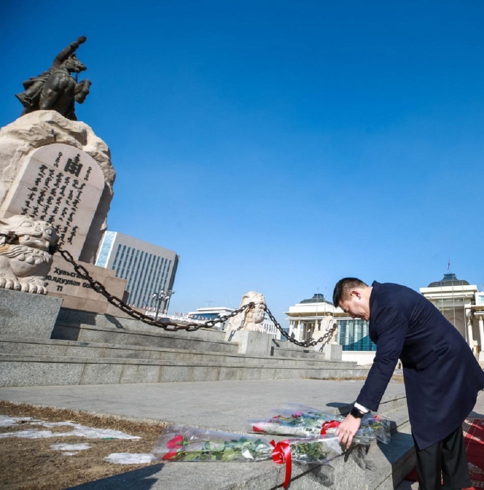 УИХ-ын дарга Г.Занданшатар, Монгол Улсын Ерөнхий сайд Л.Оюун-Эрдэнэ, МАН-ын дарга, УИХ-ын гишүүн У.Хүрэлсүх болон УИХ-ын зарим гишүүд, МАН-ын гишүүд, дэмжигчид, иргэдийн төлөөлөл Их жанжин Д.Сүхбаатарын хөшөөнд цэцэг өргөж, Эзэн Чингис хааны хөшөөнд хүндэтгэл үзүүлэв.