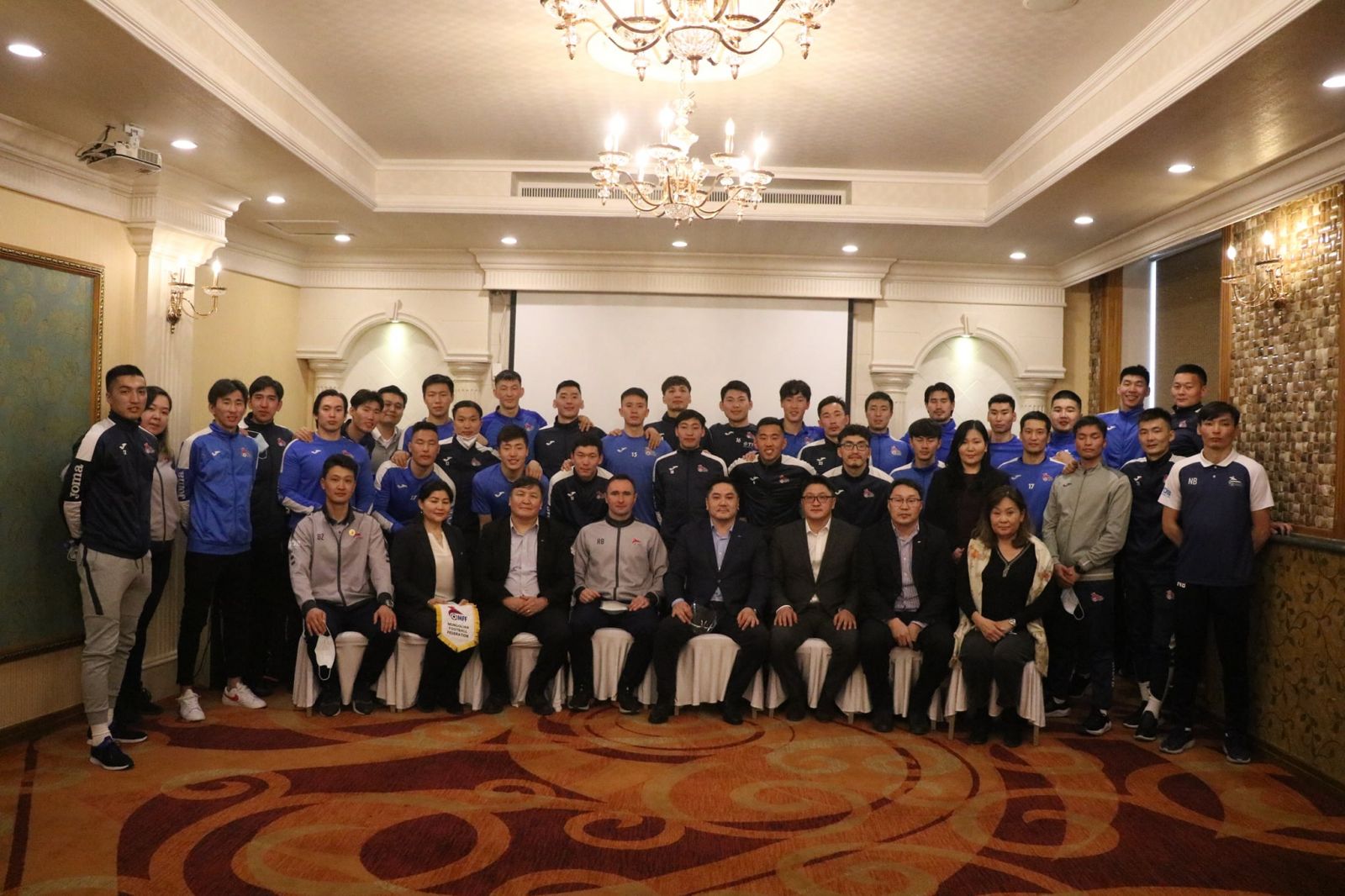 Мөн МУГТ, МХБХ-ны Техникийн захирлын үүрэг гүйцэтгэгч Б.Буман-Учрал шигшээ багийн ахлагч Н.Цэдэнбалд Монгол улсын алтан соёмбот төрийн далбааг гардуулан өгч, “Биднийг маш хариуцлагатай хоёр тоглолт хүлээж байна. Та бүхэн талбай дээр юу чаддагаа харуулаад, амжилт гаргаад ирээрэй” хэмээн захилаа.