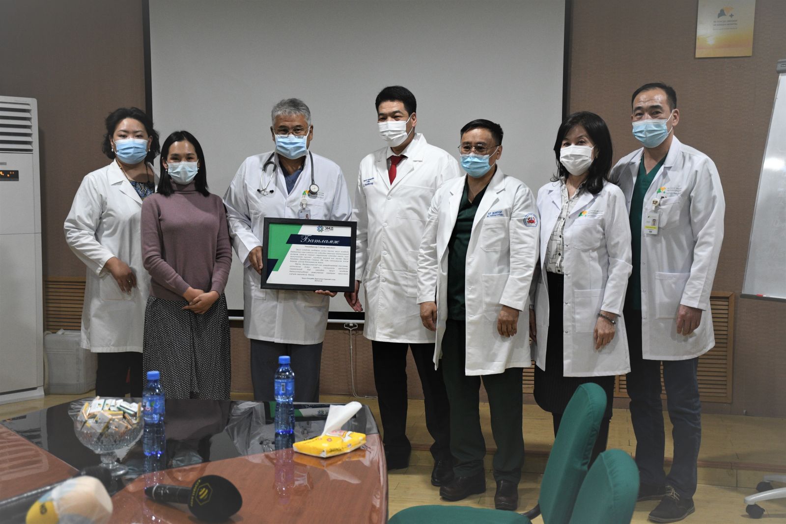 "Зүрх мартахгүй" төслийн багт талархал илэрхийлж, Эрүүл мэндийн сайд С.Энхболд батламж гардуулжээ.