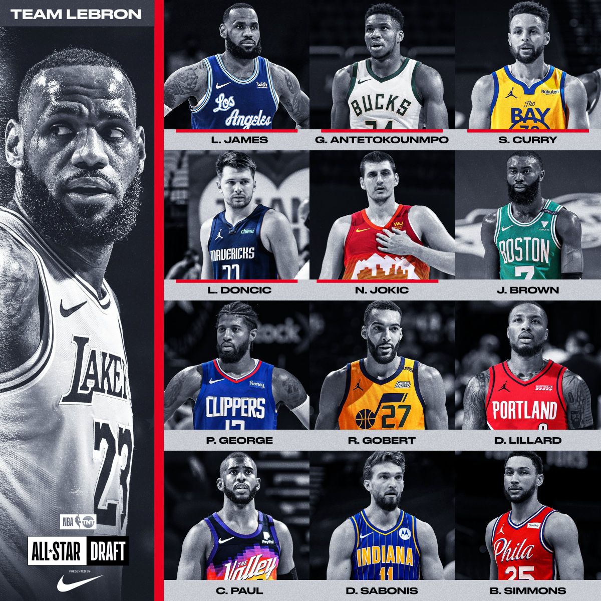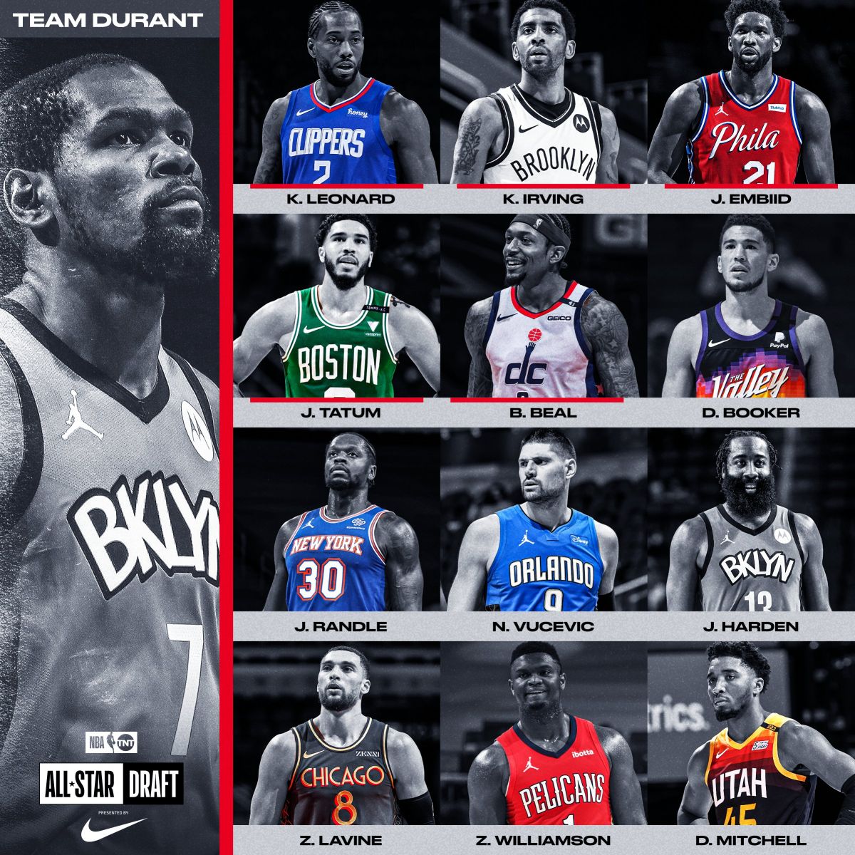 Жеймс хамгийн түрүүнд Адетокунбог сонгосон бол Дюрант багийн анд Ирвингээ авсан. Дюрант гэмтлийн улмаас тоглохгүй тул түүний гарааны эрх Тейтумд оногджээ.