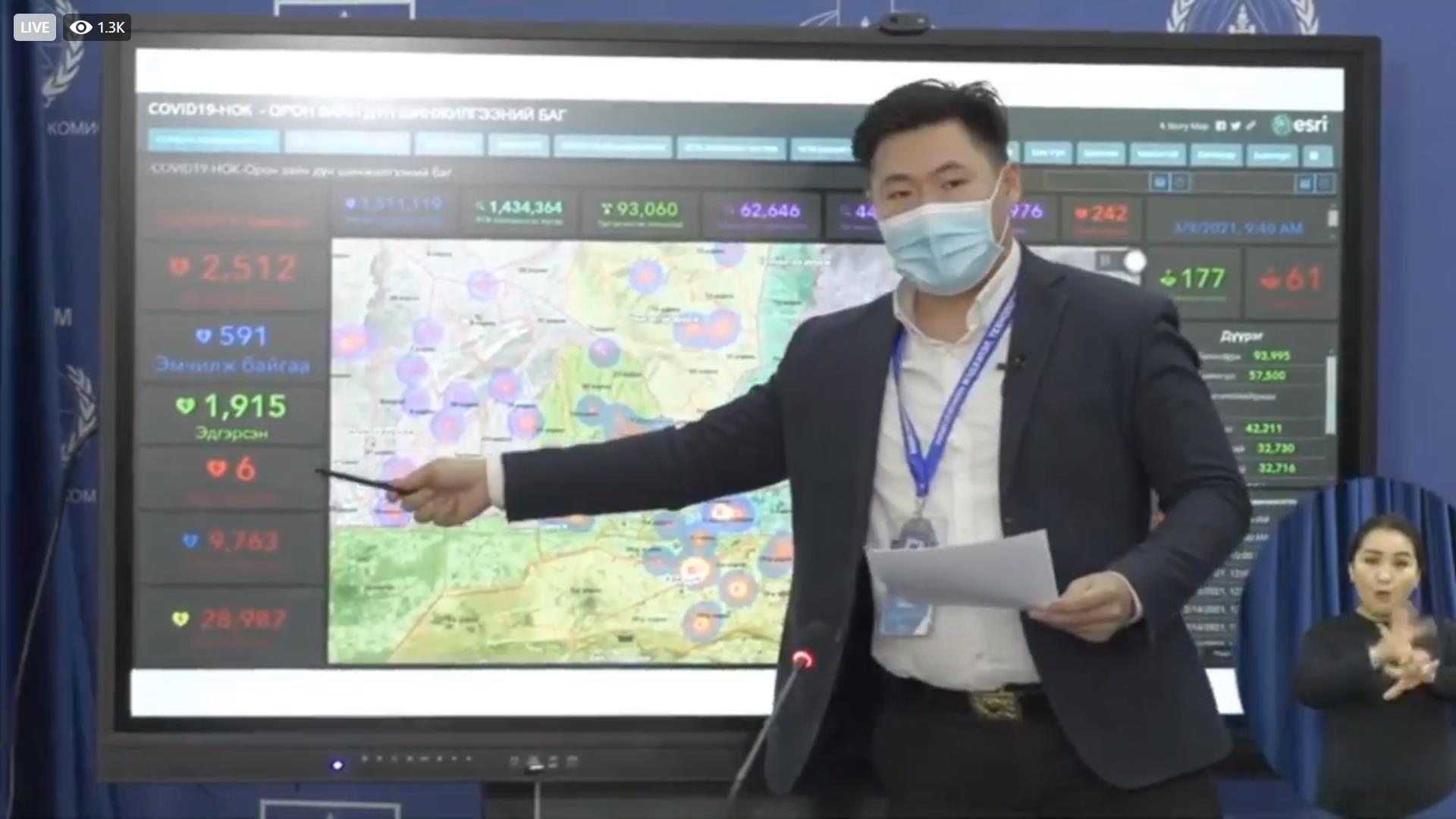 -Одоогийн байдлаар батлагдсан 2512, эмчлэгдэж байгаа 591 тохиолдол бий. Батлагдсан тохиолдлын орон зайн нэгдсэн мэдээллийн систем байгуулах тусгайлсан баг байгуулагдсан. Батлагдсан тохиолдлын дараагийн тохиолдол хэрхэн хамааралтай байгааг тогтоож, нягтаршил тооцдог. Энэхүү мэдээллийн нэгдсэн санг байгуулснаар эдгэрсэн болон, эмчлэгдэж байгаа мэдээлэл нэгдсэн системд бүртгэгдэх юм. Хамгийн өндөр эрсдэлтэй 57 хорооны нутаг дэвсгэрт халдвар тархах эрсдэл өндөр байгаа тул тухайн хороодод сэрэмжлүүлэг өгөх зэрэг ач тустай.