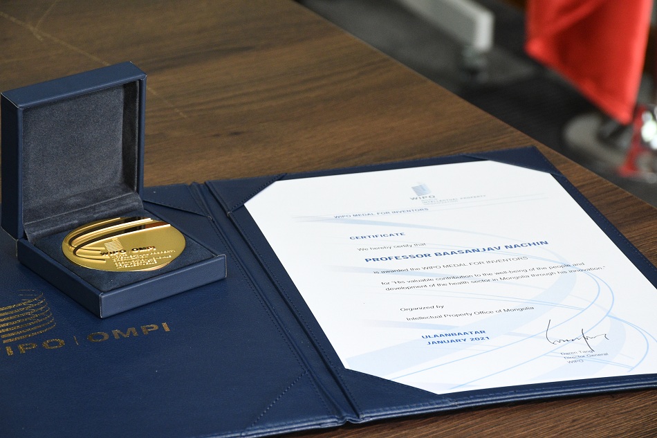 Монгол Улсын Хөдөлмөрийн баатар, Ардын эмч Начингийн Баасанжав эмч Дэлхийн оюуны өмчийн байгууллагын дээд шагнал болох “Алтан” медалиар шагнагджээ.