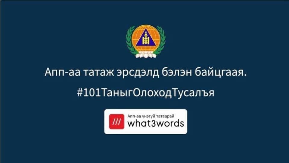 Мэдээлэл, дуудлага өгч байгаа иргэн хаяг байршил тодорхойгүй, координат өгөх боломжгүй тохиолдолд өөрийн ухаалаг гар утсан дээрээ интернэттэй болон интернэтгүй аль ч тохиолдолд ухаалаг гар утсандаа суулгасан “what3words” апп-г ашиглан гурван үгт хаягаа ирүүлснээр байршлаа зөв өгөх боломжтой юм гэж Онцгой байдлын ерөнхий газраас мэдээллээ.