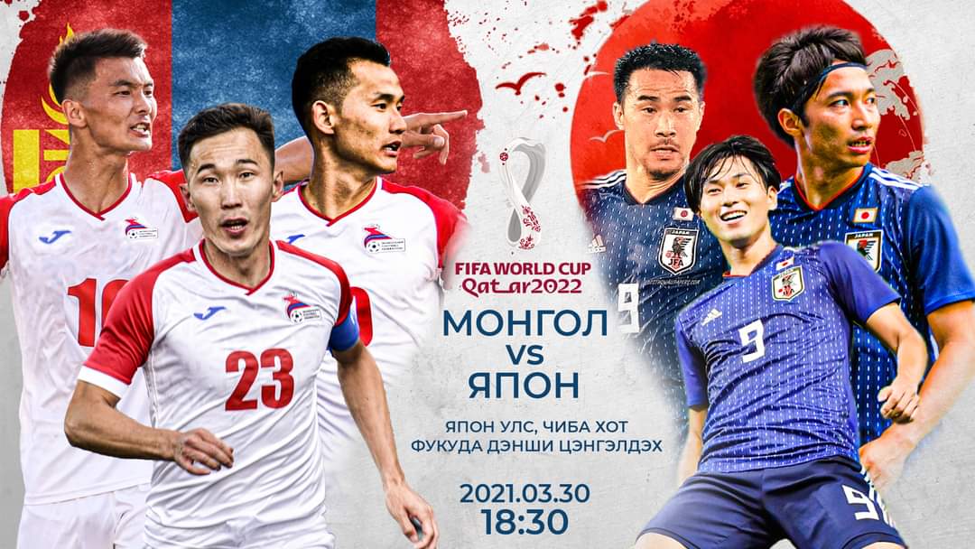 Монголын хөлбөмбөгийн шигшээ баг Катар-2022 ДАШТ-ий урьдчилсан тоглолтын хүрээнд Японы шигшээ багтай энэ сарын 30-нд Чибад тоглоно. Японы хөлбөмбөгийн холбооноос тус тоглолтод оролцох бүрэлдэхүүнээ зарлалаа.