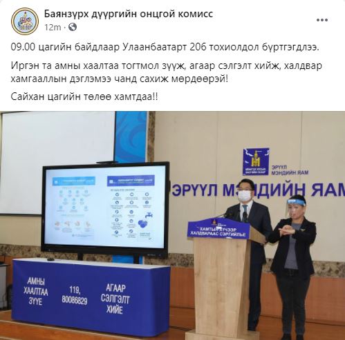 Хуралдааны үеэр Ерөнхий сайд Л.Оюун-Эрдэнэ Улсын Онцгой комисс болон Нийслэлийн Онцгой комиссыг өнөөдөртөө багтаж хуралдах үүрэг, чиглэл өглөө. Ингэхдээ "Шийдвэр гаргахдаа эрүүл мэнд, эдийн засаг, вакцинжуулалтын нийлүүлэлтийг түргэсгэх, иргэдээс мэдээлэл нуухгүй, хөл хорио тогтоох бол эрт мэдээлэх хэрэгтэй" гэдгийг тодотгожээ.