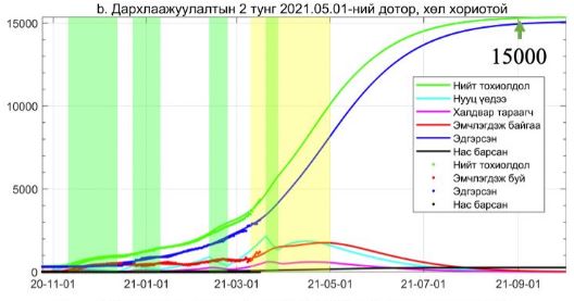 Гамшгийн үеийн "Улбар шар" түвшинд вакцинжуулалтыг үргэлжлүүлэх нь вакцинжуулалтын ач холбогдлыг бууруулж, энэ оны есдүгээр сар гэхэд нийт батлагдсан тохиолдол 24 мянгад хүрнэ. Хөл хорионы арга хэмжээг авснаар үүнийг 15 мянга болгон 37 хувиар бууруулах боломжтой гэсэн тооцооллыг гаргажээ.