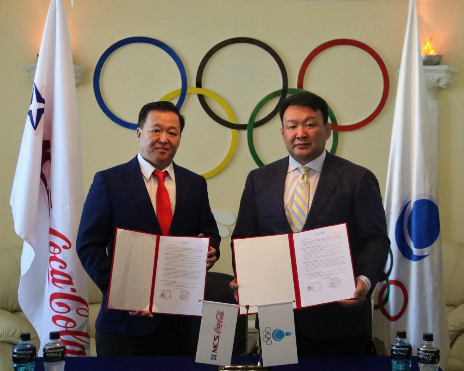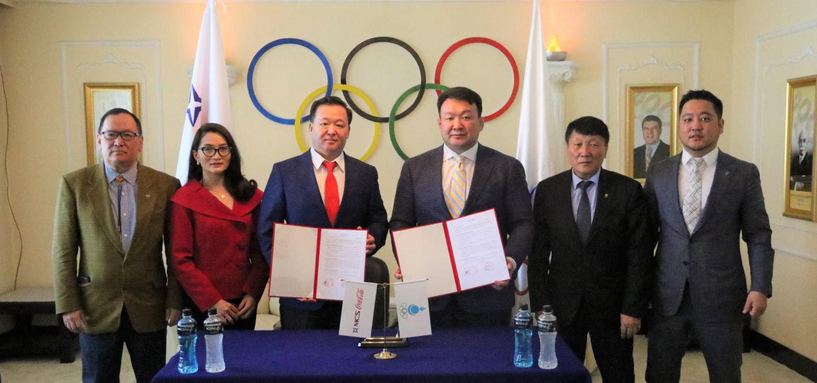 Монголын Үндэсний Олимпийн Хороо М-Си-Эс Кока-Кола компанитай дөрвөн жилийн хугацаанд албан ёсны түнш байгууллагаар хамтран ажиллах санамж бичиг байгууллаа. Санамж бичигт Монголын Үндэсний Олимпийн Хорооны Ерөнхийлөгч Н.Түвшинбаяр, М-Си-Эс Кока-Кола компанийн Гүйцэтгэх захирал Л.Мягмаржав нар гарын үсэг зурав.