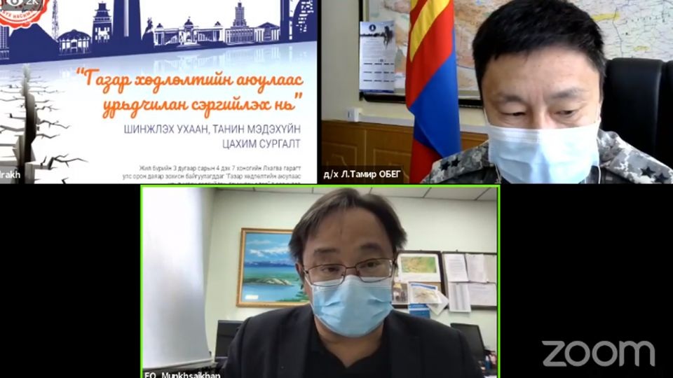 “Газар хөдлөлтийн аюулаас урьдчилан сэргийлэх, таниулах өдөр”-ийг тохиолдуулан Онцгой байдлын ерөнхий газар, Гамшиг судлалын хүрээлэн, ШУА-ийн Одон орон, геофизикийн хүрээлэн, “Дэлхийн зөн Монгол” олон улсын байгууллага хамтран “Газар хөдлөлтийн аюулаас урьдчилан сэргийлэх нь” сэдэвт шинжлэх ухаан, танин мэдэхүйн цахим сургалтыг улсын хэмжээнд зохион байгуулж байна.