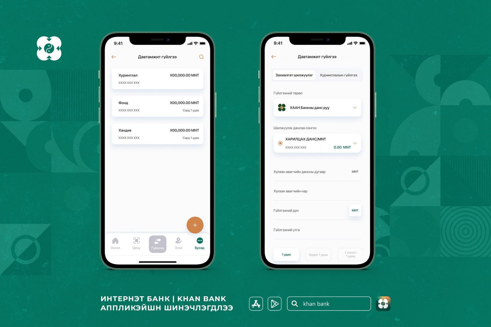 Тэгвэл ХААН Банкны сүүлд танилцуулсан Интернэт банк, Khan Bank аппликэйшний шинэчлэлт харилцагч танд банкны олон төрлийн үйлчилгээг ЭРСДЭЛГҮЙ, ШУУРХАЙ авах  боломжийг олгож байна. Харилцагч та санхүүгээ удирдахад чухал шаардлагатай олон төрлийн үйлчилгээг банкны салбарт очилгүйгээр,  гар утсаараа дамжуулан авах нөхцлийг улам сайжруулж, нэмэгдүүлсэн нь Интернэт банк, Khan Bank аппликэйшний шинэчлэлтийн давуу тал юм.