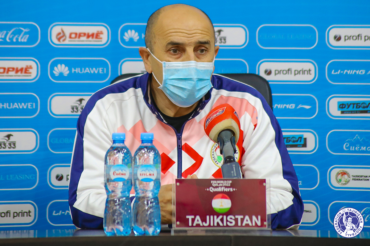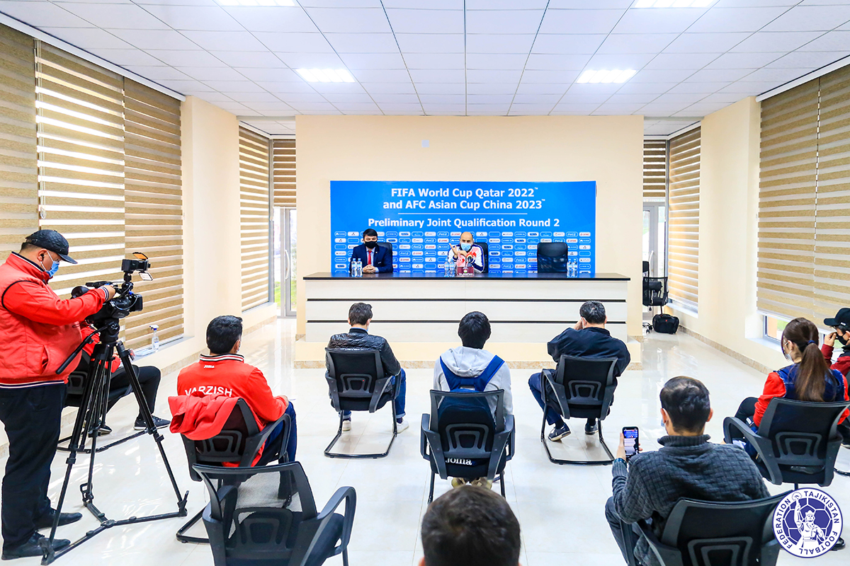 Тоглолтын өмнөх хэвлэлийн бага хурал тус хотын Төв цэнгэлдэх хүрээлэнд болж, Тажикстаны шигшээ багийн ерөнхий дасгалжуулагч Усмон Тошев оролцлоо.