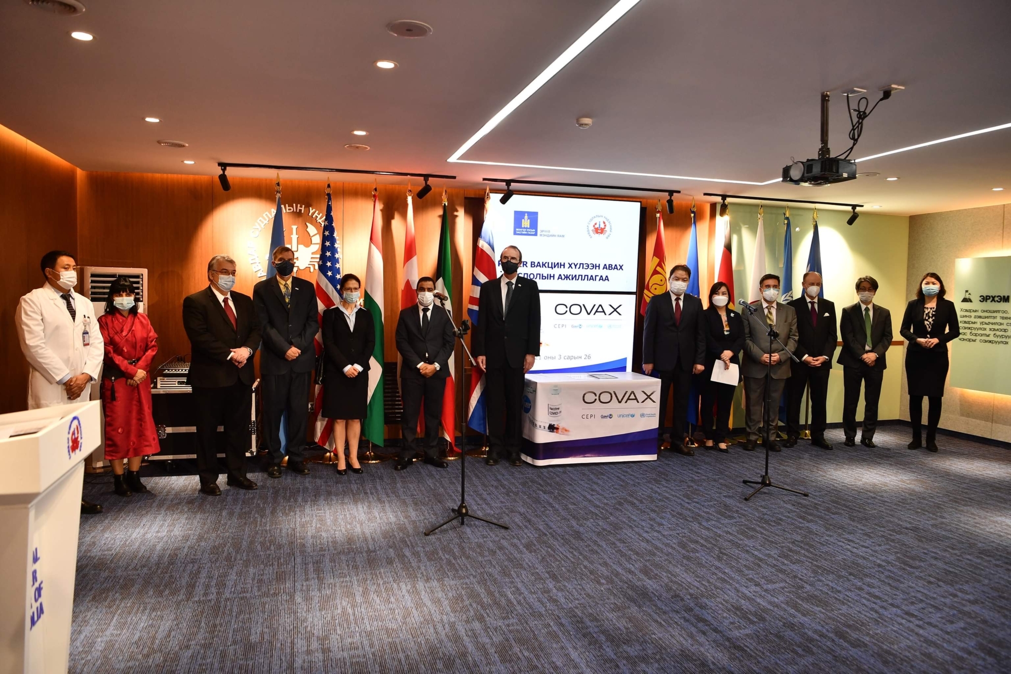 Олон улсын КОВАКС хөтөлбөрийн хүрээнд вакцин түгээх эхний шатны хуваарийн дагуу энэ оны 5 дугаар сар хүртэл АстраЗенека вакцинаас 112.800 тун, Файзер вакцинаас 25.740 тунг тус тус манай улсад нийлүүлэхээс одоогийн байдлаар нийт 40.140 тунг хүлээн аваад байна.