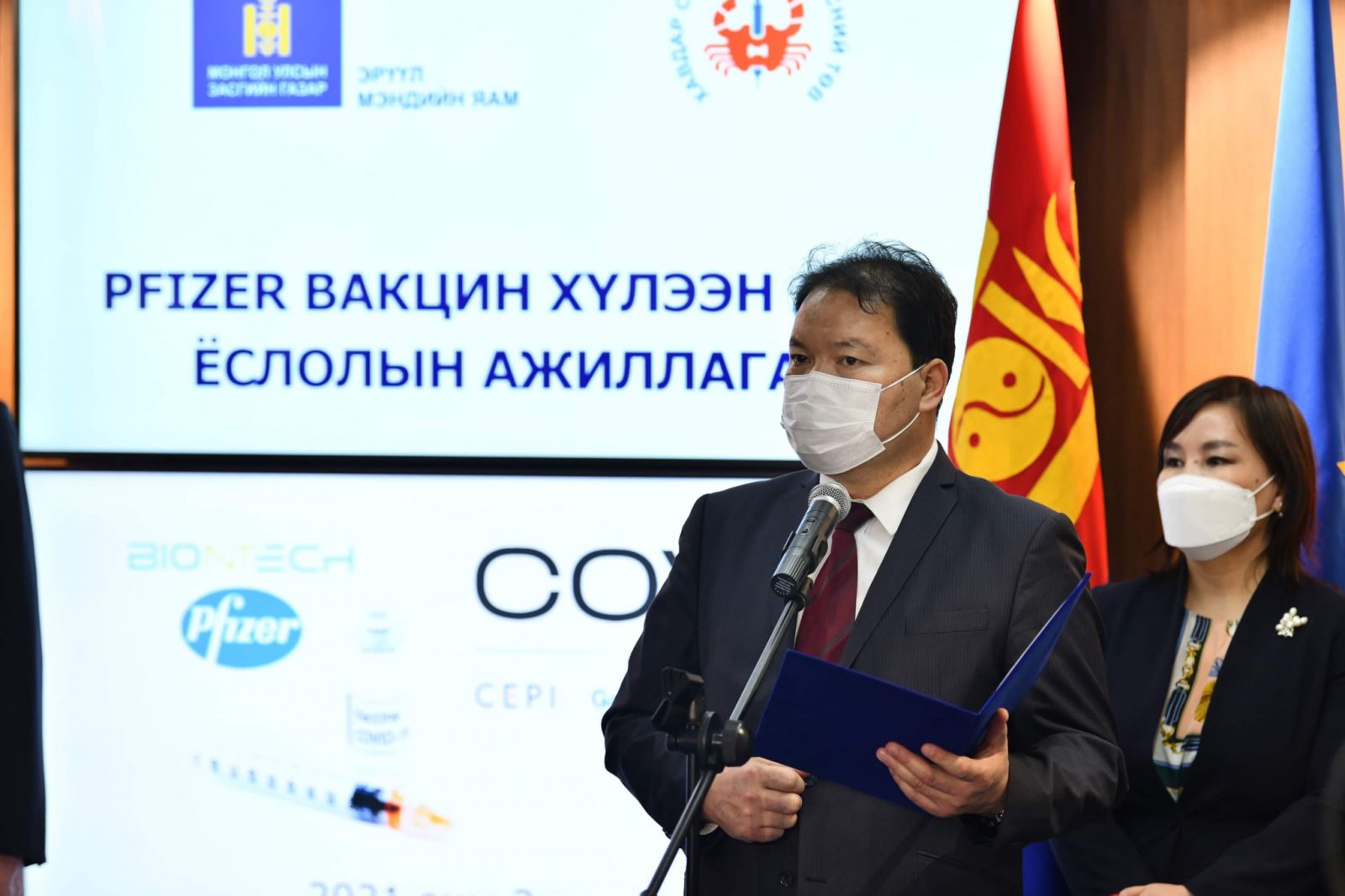 Монгол Улс олон улсын вакцин хангамжийн КОВАКС хөтөлбөрийн хүрээнд Файзер вакцин хүлээн авах ажиллагаа /2021.03.26/-ны өдөр Хавдар судлалын үндэсний төвд болов.