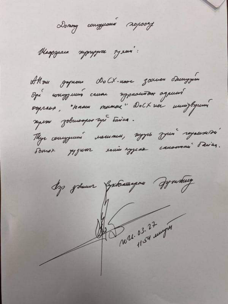 Ардчилсан намын даргын сунгаа хоёр талд өрнөж байгаа ч нэг өдөр санал хураалт явуулна гэсэн аман хэлэлцээр хийж, гуравдугаар сарын 28-нд хугацаагаа тохирсон. Гэвч Ц.Тувааны АН-ынхан өнгөрсөн шөнө /2021.03.26/ шийдвэрээ өөрчилж, өнөөдөр санал хураалтаа цаасаар авч эхэлжээ.