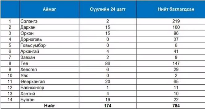 Сүүлийн 24 цагийн нэгтгэсэн дүнгээр