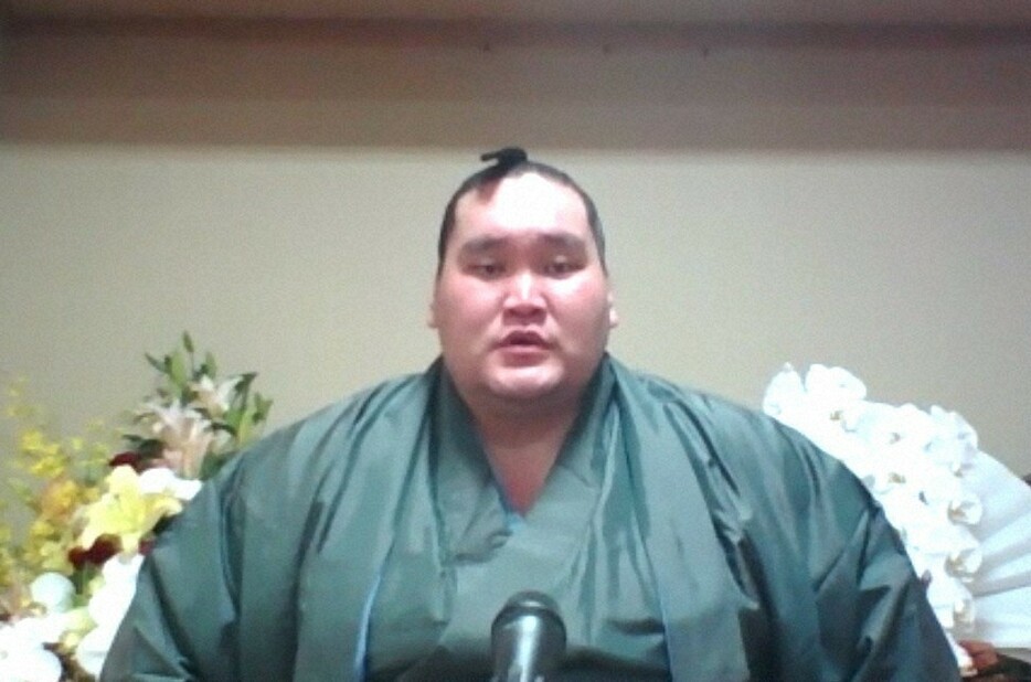 Мэргэжлийн сүмо бөхийн Хаврын тэмцээнд түрүүлсэн сэкивакэ Тэрүнофүжи zoom-ээр сэтгүүлчдэд ярилцлага өглөө.