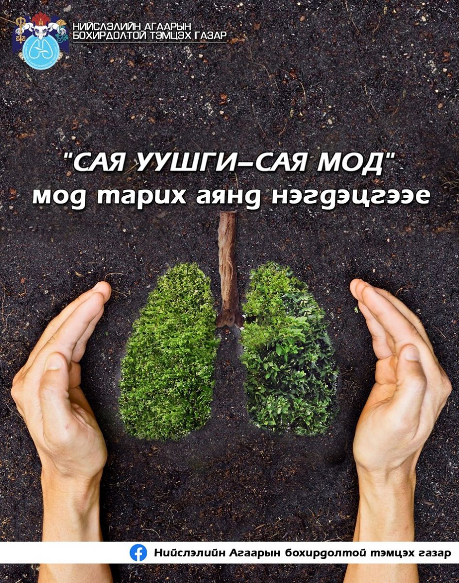 Иймд иргэд, аж ахуй нэгж байгууллагуудыг “Сая уушги-Сая мод” аянд идэвхитэй нэгдэн бусдыг уриалж, манлайлан цэвэр агаартай цэвэрхэн хотод эрүүл амьдрахын төлөө мод тарихыг уриалж байна.