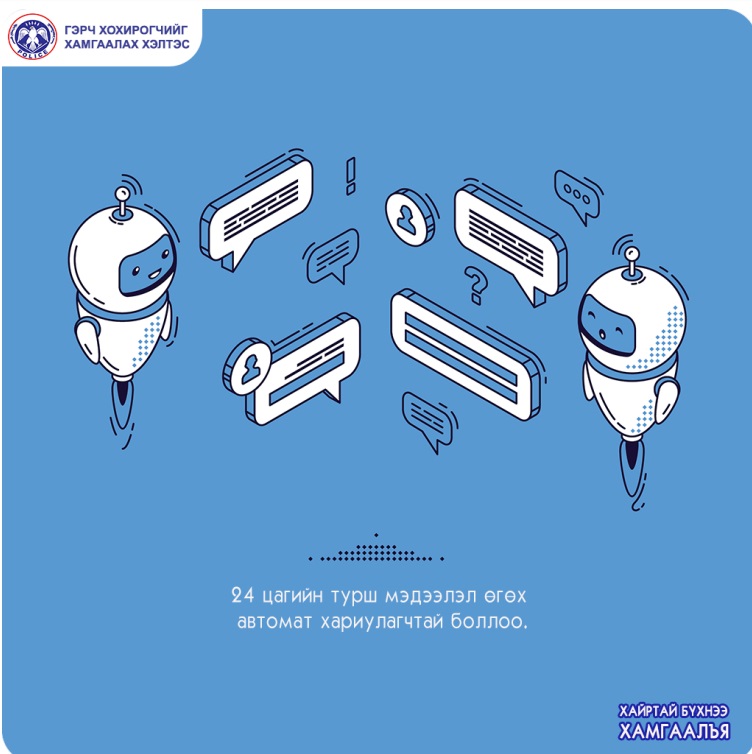 Иргэд амь нас, эрүүл мэндээ хамгаалуулах хүсэлтийг хэрхэн гаргах болон гэрч, хохирогчийг хамгаалах үйл ажиллагааны талаарх анхан шатны мэдээллийг түргэн шуурхай өгөх зорилгоор Гэрч, хохирогчийг хамгаалах хэлтэс “Чатбот” үйлчилгээг үйл ажиллагаандаа ашиглаж эхэллээ.
