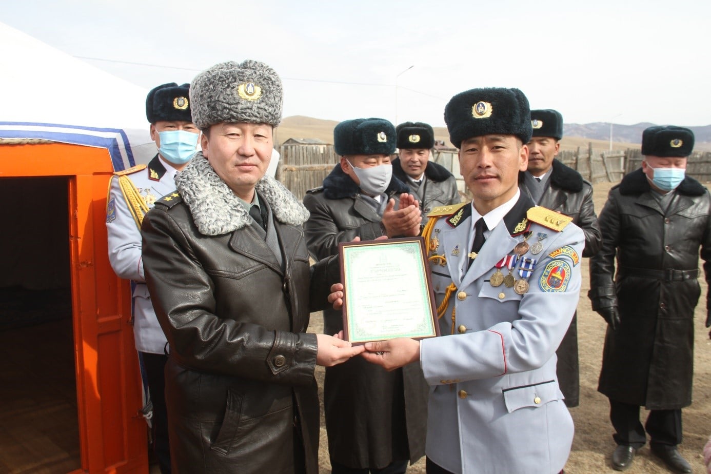 Барилгачин дайчид “Монгол цэргийн өдөр”, орчин цагийн Зэвсэгт хүчин үүсэн байгуулагдсаны түүхт 100 жилийн ойг тохиолдуулан ангийн бие бүрэлдэхүүний нийгмийн асуудлыг шийдвэрлэх ажлын хүрээнд Барилгын материал үйлдвэрлэлийн ротын салааны ахлагч, ахлах ахлагч Б.Лхагва-Эрдэнэд өргөө цагаан гэр, 4 тал хашаа, 0.7 га газрын гэрчилгээний хамт бэлэглэжээ.