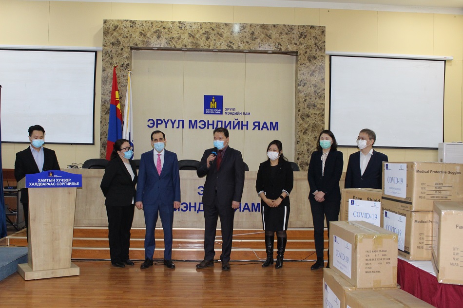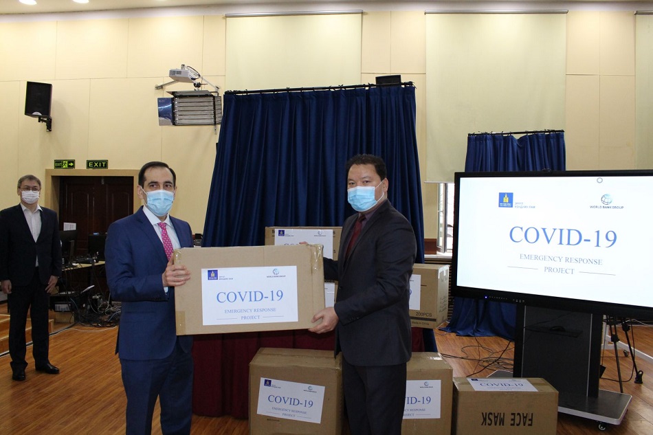 Дэлхийн банкны Цар тахлын онцгой байдлын сангаас 1 сая ам.долларын буцалтгүй тусламжийг эрүүл мэндийн тэргүүн эгнээнд цар тахалтай нүүр тулж буй эмч,эмнэлгийн ажилчдыг эрсдэлээс хамгаалахад зориулан хувийн хамгаалах хэрэгслийн багцийг өнөөдөр ийнхүү гардуулан өглөө.