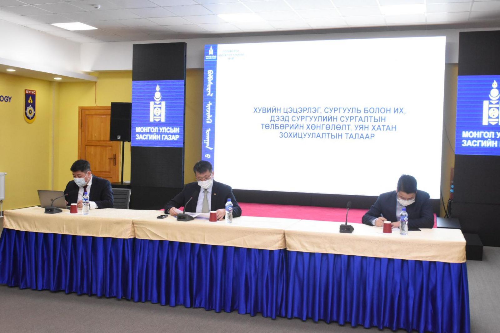 Тэрбээр “Цар тахлын хуульд боловсролын салбартай холбоотой гурван гол заалт бий. Нэгдүгээрт, өмчийн хэлбэр үл харгалзан бүх шатны байгууллагын хичээл, сургалтын үйл ажиллагааг тодорхой хугацаанд цахим хэлбэрт шилжүүлэхээр болж, сургалтын болон дотуур байрны төлбөрийг дараагийн хичээлийн жилд шилжүүлэх асуудлыг Засгийн газарт үүрэг болгосон. Хоёрдугаарт, сургалтын чанар, хичээлийн хоцрогдлын асуудалтай холбоотой. Гуравдугаарх нь, хичээлийг танхим биш цахимаар зохион байгуулсан тохиолдолд чанар алдагдуулахгүй байхаар зохион байгуулах чиглэлийг дээрх хуулиар олгосон. Засгийн газар энэ чиглэлээр хэрхэн ажилласан талаарх мэдээллийг өнөөдөр өгөх гэж байна.