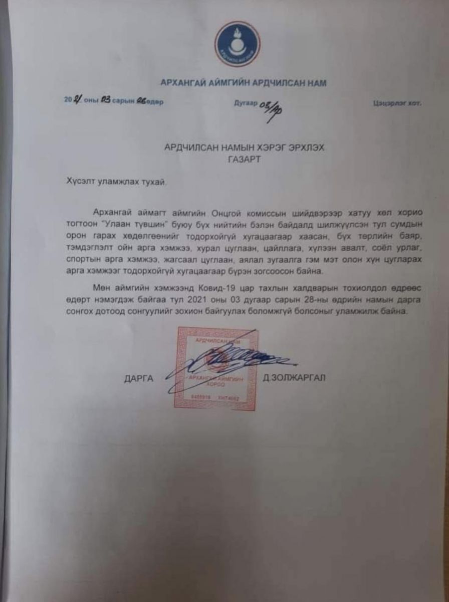 Тэд мөн "АН-ын Дотоод сонгуулийн хорооны дарга И.Мөнхжаргал нар өнгөрсөн долоо хоног амралтын өдрүүдэд /2021.03.27-28/ зохион байгуулсан АН-ын даргын сонгуулийг намын Үндсэн дүрэм, АН-ын Дотоод сонгуулийн хорооны журмыг зөрчиж, явуулсан" гээд сонгуулийг хүчингүйд тооцохыг шаардаж байгаагаа илэрхийлсэн юм.