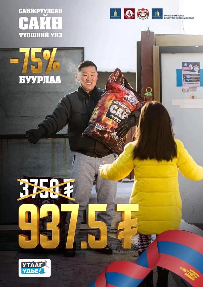 2020-2021 оны өвөл Засгийн газрын 200 дугаар тогтоолоор сайжруулсан шахмал түлшний үнийг 75 хувиар бууруулж 937.5 төгрөгөөр худалдан авч гэр хорооллын иргэд маань цар тахалын хөл хориотой өдрүүдэд гал алдахгүй, хэмнэлттэй өнтэй сайхан өвөлжлөө.