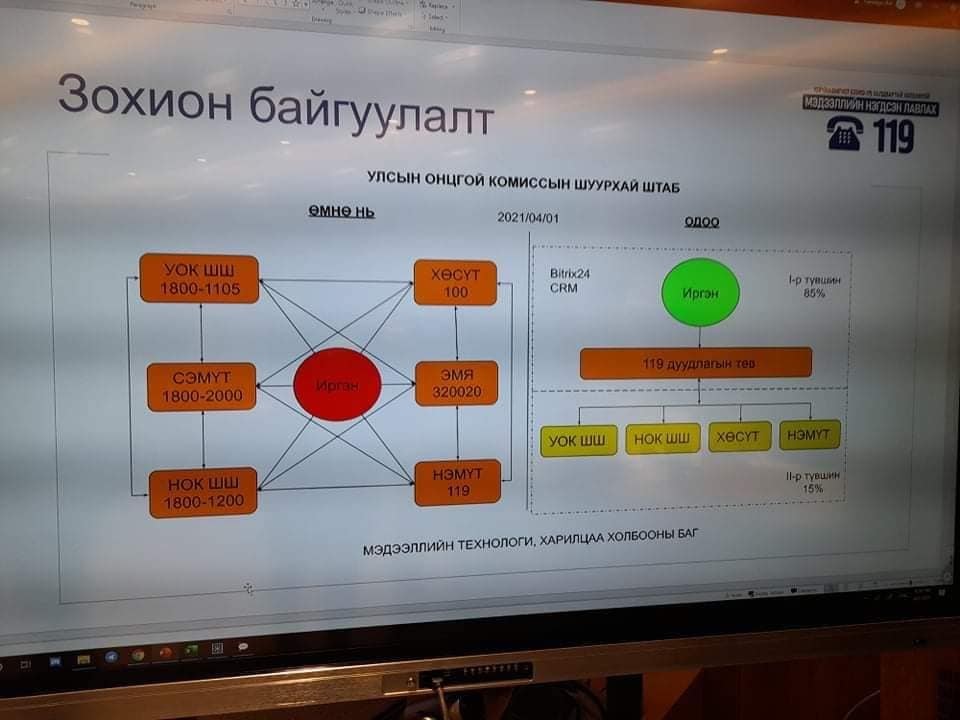 Иргэд ковидтой холбоотой асуудлаар зөвлөгөө, мэдээлэл авах, санал, гомдол, хүсэлтээ илэрхийлэх, вакцинжуулалт, гэрийн тусгаарлалт ,чартeр нислэг, эмчилгээ оношилгоо, шинжилгээ өгөх зэрэг нэгдсэн мэдээллийг 119 тусгай дугаарт залган авах боломжтой боллоо.