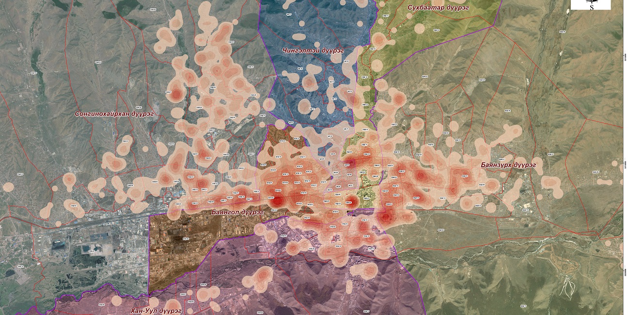 Тэгвэл Нийслэлийн онцгой комиссын Шуурхай штабын Орон зайн дүн шинжилгээний бүлгээс гуравдугаар сарын 15-30-ны хооронд батлагдсан халдварын 2552 тохиолдлыг мэдээллийн санд бүртгэж, орон зайн дүн шинжилгээний аргачлалаар халдварын эрсдэлийн тархалт, нягтрал, чиг хандлагыг тооцоолсон байна. Уг тооцооллоор улаан өнгөөр үзүүлсэн хороодын нутаг дэвсгэрт халдварын төв голомт үүсэж, халдвар тархах өндөр эрсдэлтэй байгаа юм.