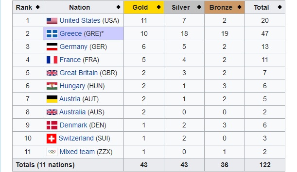 Алс тэртээ 1986 оны дөрөвдүгээр сарын 6-нд Грекийн Афинд орчин үеийн Анхны олимпын наадмын нээлтийн ёслол болж байлаа. Ес хоног үргэлжилсэн тус наадамд 16 орны 241 тамирчин спортын 9 төрөлд 43 багц медалийн төлөө өрсөлджээ. Тэр үед эмэгтэйчүүдийг олимпын наадамд оролцуулдаггүй байв.