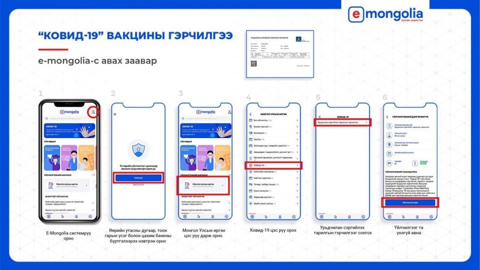 Вакцины гэрчилгээг лавлагаа хэлбэрээр монгол, англи хэлээр авах боломжийг ч бүрдүүлээд байна.