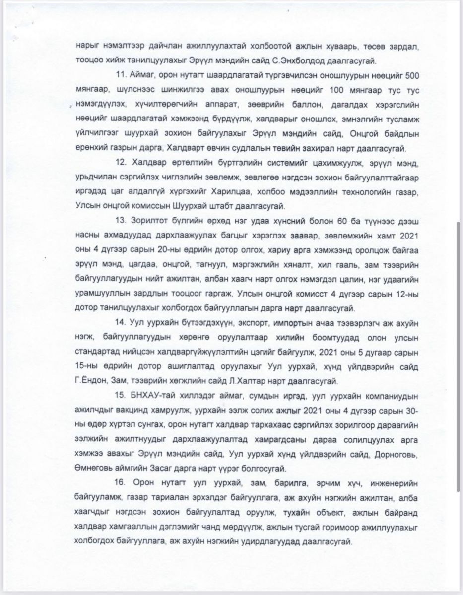 Засгийн газар короновирусыг хяналтаас бүрмөсөн алдаж, Үндэсний аюулгүй байдалд ноцтой хор уршиг учруулах нөхцөл байдал үүссэн тул улс оронд онц байдал, хөл хорио тогтоохыг Монгол улсын Ерөнхийлөгчөөс шаардаж байна.