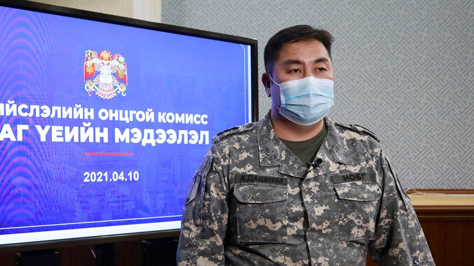 -Засгийн газар болон УОК-ын тогтоол, Нийслэлийн Засаг даргын захирамжаар өнөөдөр 06:00 цагаас дөрөвдүгээр сарын 25-ны 00:00 цаг хүртэл бүх нийтийн бэлэн байдлын зэрэгт шилжсэн. Өнгөрсөн удаагийн “Нэг хаалга-Нэг шинжилгээ” арга хэмжээний үеэр хатуу хөл хорио тогтоож, бүх хөдөлгөөнийг хаасан. Энэ удаагийн хөл хорио халдвар хамгааллын дэглэмийг сахиж, халдварыг таслан зогсоох зорилготой. Цаг агаар дулаарч, өдөр уртсаж байгаатай уялдуулан иргэдийн хөдөлгөөнийг хорихгүйгээр, гэрийнхээ ойролцоо салхинд гарах зохицуулалтыг хийсэн. Тодруулбал, гэр бүлийн хүрээнд таваас дээш хүний бөөгнөрөл үүсгэхгүйгээр гэрийнхээ ойролцоо салхинд гарах боломжийг нь нээж өгсөн. Тэрнээс нэг дүүргээс нөгөө дүүрэг рүү явж болохгүй. Улаанбаатар хотын хэмжээнд цагдаа болон онцгой байдлын байгууллагын хамтарсан 3000 гаруй хүн гурван ээлжинд эргүүл, хамгаалалтад гарч, хяналт тавьж ажиллаж байгаа. Гэхдээ эдгээр хүн нь өмнөх хөл хорио шиг байрны гадаа зогсохгүй. Олон хүн цугларсан газар болон иргэний хөдөлгөөнд хяналт тавьж, иргэний үнэмлэхийг нь үзэж, хяналт, шалгалт явуулах юм.