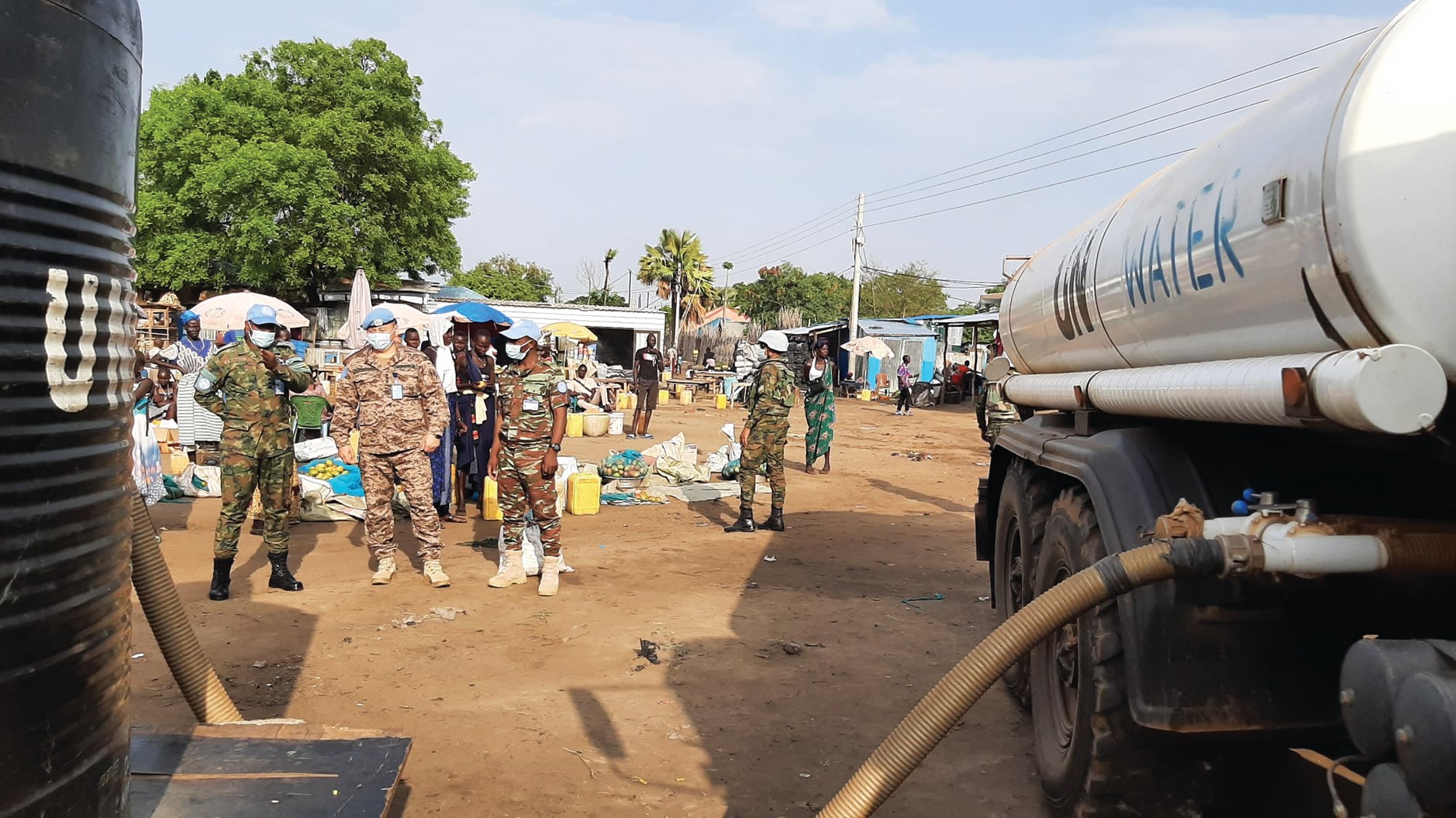 БНӨСУ-д явагдаж байгаа НҮБ-ын энхийг сахиулах ажиллагааны “Жуба” секторын командлагч, хурандаа Б.Эрдэнэбат нарын албаны хүмүүс иргэн цэргийн харилцааг бэхжүүлэх ажлын хүрээнд Жуба хотын Мунуки захын ойролцоо явагдсан орон нутгийн иргэдэд цэвэр ус түгээх ажилд биечлэн оролцлоо.