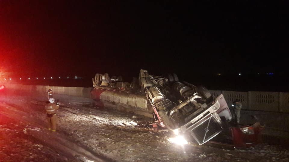 Хан-Уул дүүргийн 13 дугаар хороо, Туул тосгоны замд 20 тонн шатахуун, 12 тонн түлш ачсан “Мон-Суль” ХХК-ийн шалаанз маркийн автомашин замын хажуу руу унаж, түлшний сав нь цоорч түлш асгарчээ.