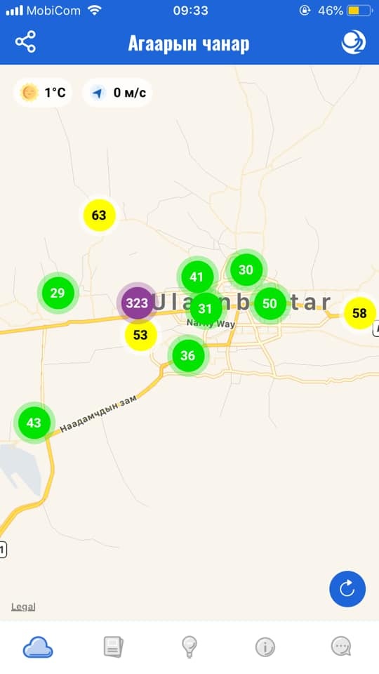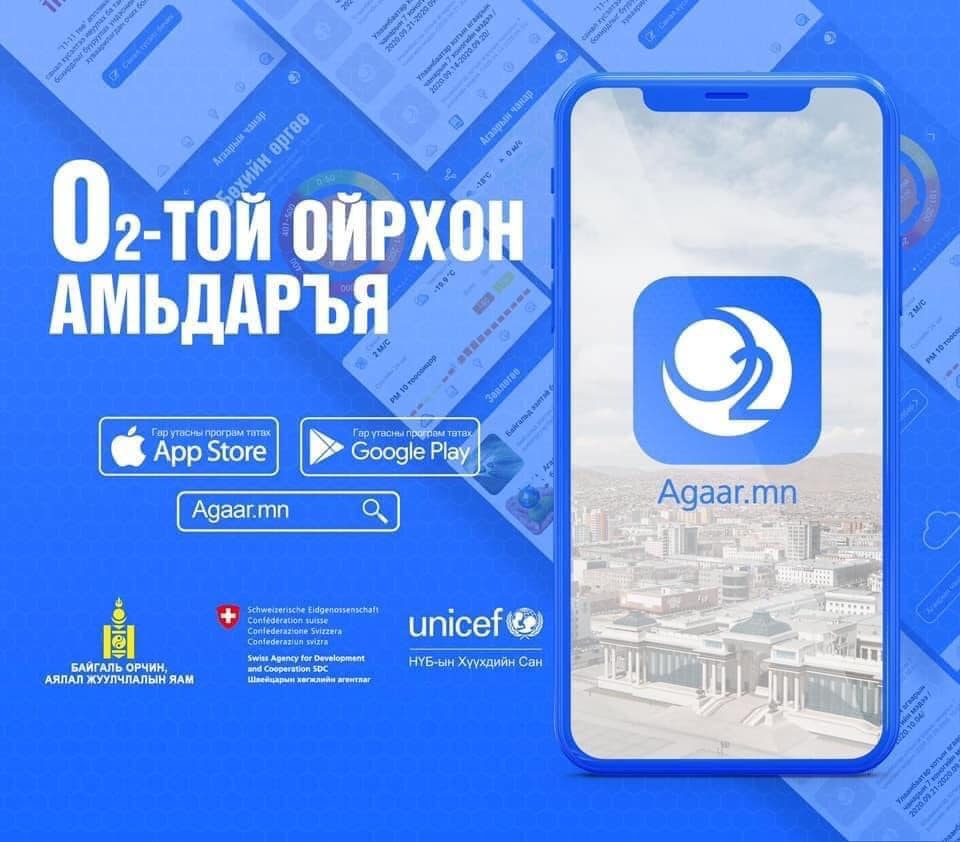 Иргэн та www.agaar.mn сайтаар зочилж, мөн О2 аппликейшнийг гар утсан дээрээ суулгаснаар өөрийн амьдарч буй орчны агаарын чанарын индекстэй танилцах боломжтой.