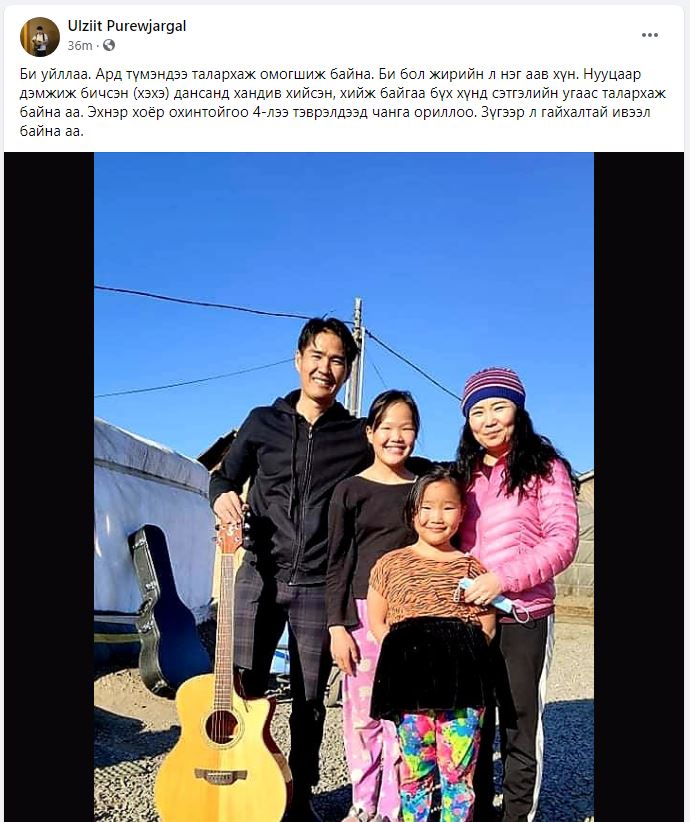 Хөл хорионд орсон хөршүүддээ зориулан хашаан доторх чингэлэг дээрээсээ дуу хуураа өргөсөн Ө.Пүрэвжаргалын тоглолтыг өнөөдөр NTV телевиз түүний зөвшөөрөлтэйгөөр дахин зохион байгуулж, олон нийтийн сүлжээнд цацсан билээ.