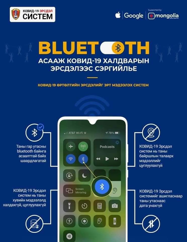 Дэлхийн 60 гаруй улс орны 130 сая гаруй хүн ашиглаж, коронавируст халдвартай тэмцэж байгаа бөгөөд Монгол Улсын Онцгой комиссоос монгол болон англи хэл дээр COVID-19 ERSDEL нэрээр монголчуудад ашиглах боломжийг “E-Mongolia”-ийн дэмжлэгтэйгээр бүрдүүлээд байгаа юм.