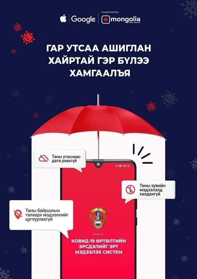 Дэлхийн 60 гаруй улс орны 130 сая гаруй хүн ашиглаж, коронавируст халдвартай тэмцэж байгаа бөгөөд Монгол Улсын Онцгой комиссоос монгол болон англи хэл дээр COVID-19 ERSDEL нэрээр монголчуудад ашиглах боломжийг “E-Mongolia”-ийн дэмжлэгтэйгээр бүрдүүллээ.