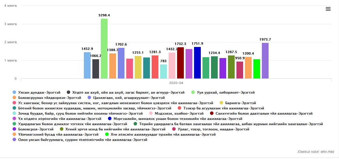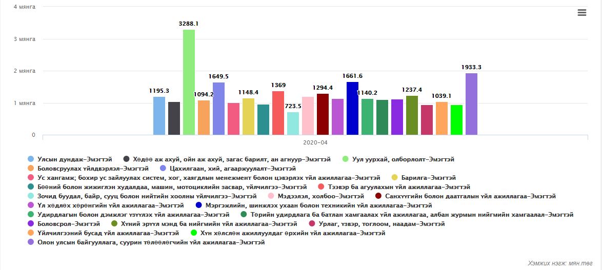 Нэг ажилтанд ногдох сарын дундаж цалин 2020 оны дөрөвдүгээр улирлын байдлаар 1.3 сая төгрөг болж, өмнөх оны мөн үеэс 85.4 мянган төгрөг буюу 6.9 хувиар, өмнөх улирлаас 59 мянган төгрөг буюу 4.6 хувиар өссөн гэж ҮСХ-ноос гуравдугаар сард танилцуулсан.