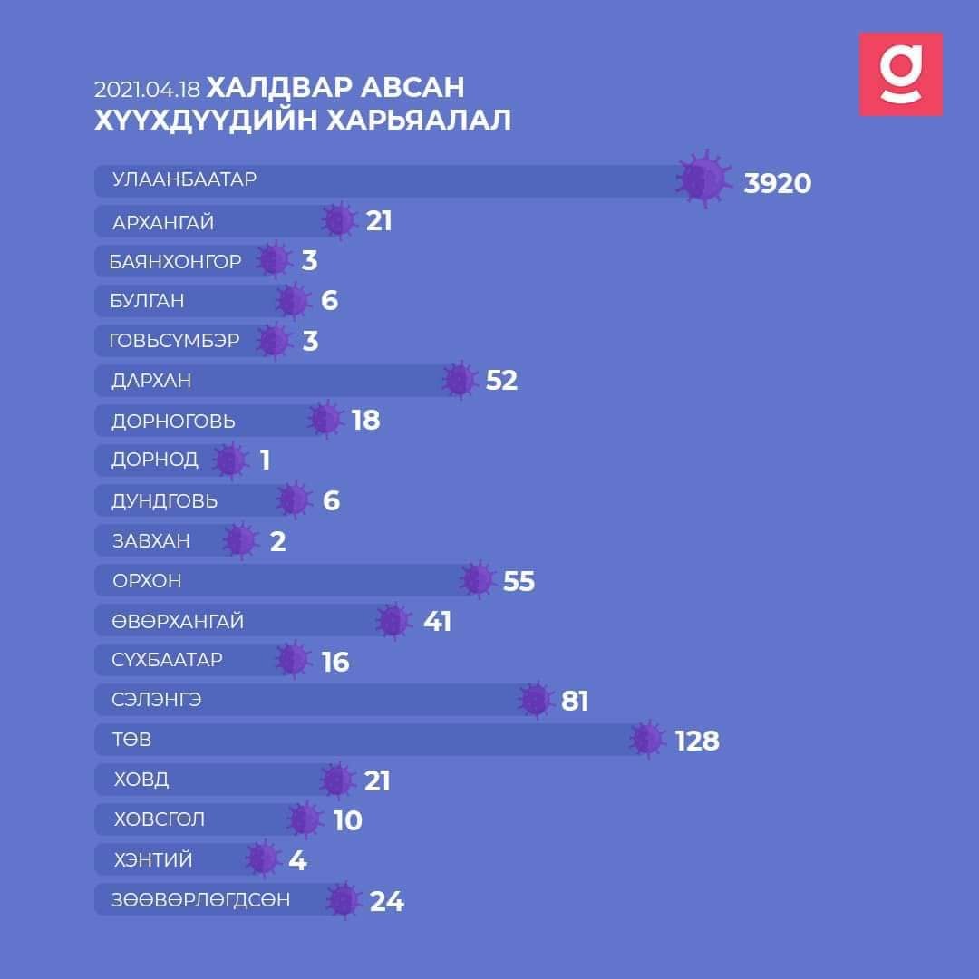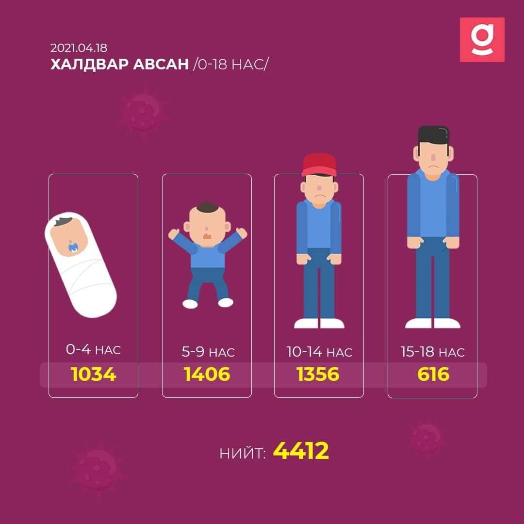 2021.04.18-ны өдрийн байдлаарх хүүхдийн өвчлөлтэй холбоотой статистик мэдээллийг хүргэж байна.