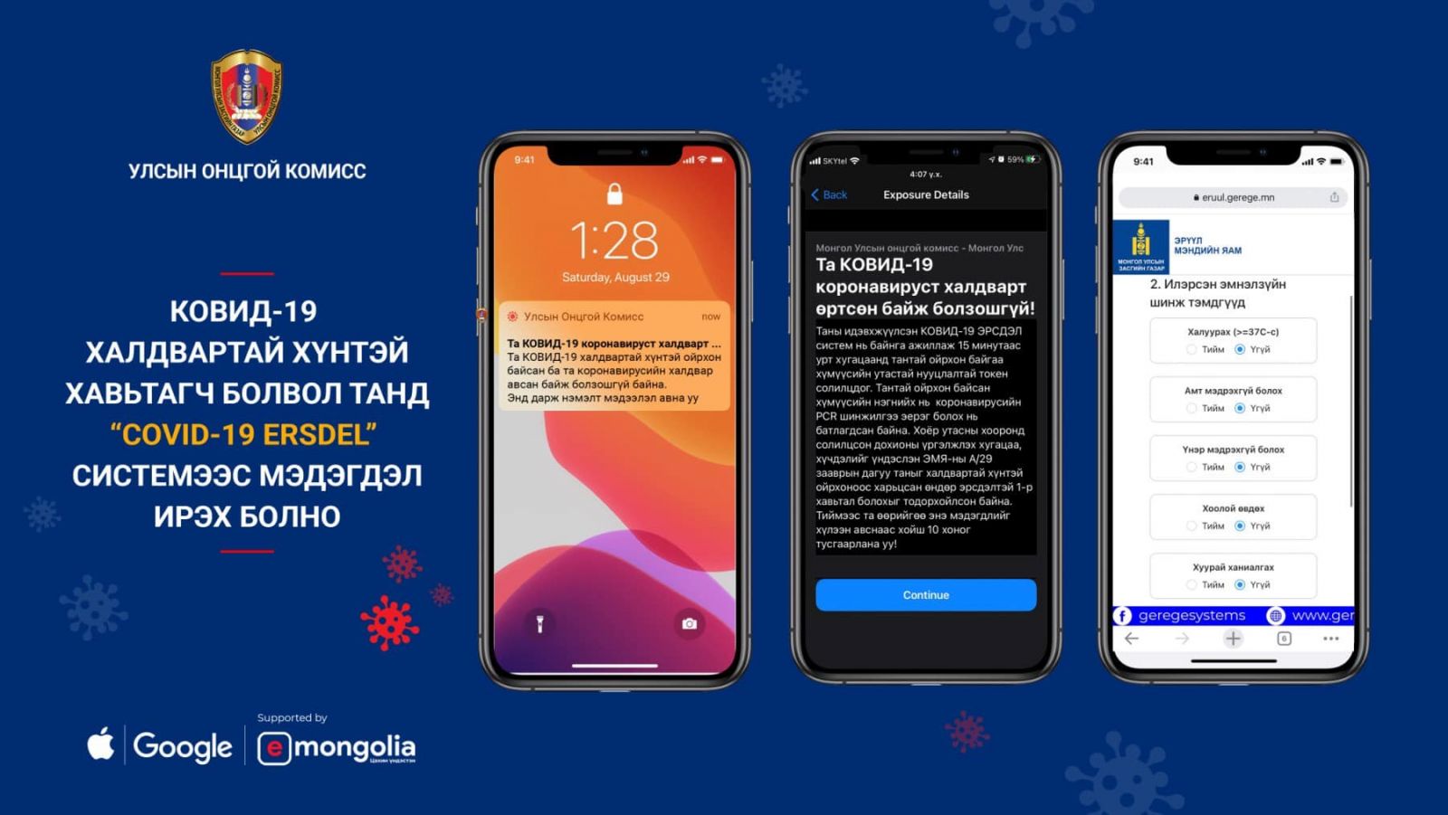 Монгол Улсын Засгийн газар Google болон Apple компанитай хамтран дэлхийн 60 гаруй улс оронд 130 сая гаруй хүн ашиглаж буй EXPOSURE NOTIFICATION буюу COVID-19 ERDEL системийг Монгол Улсад ашиглах боломжийг бүрдүүлж, дөрөвдүгээр сарын 19-нд бүх нийтийн хэрэглээнд нэвтрүүлсэн.