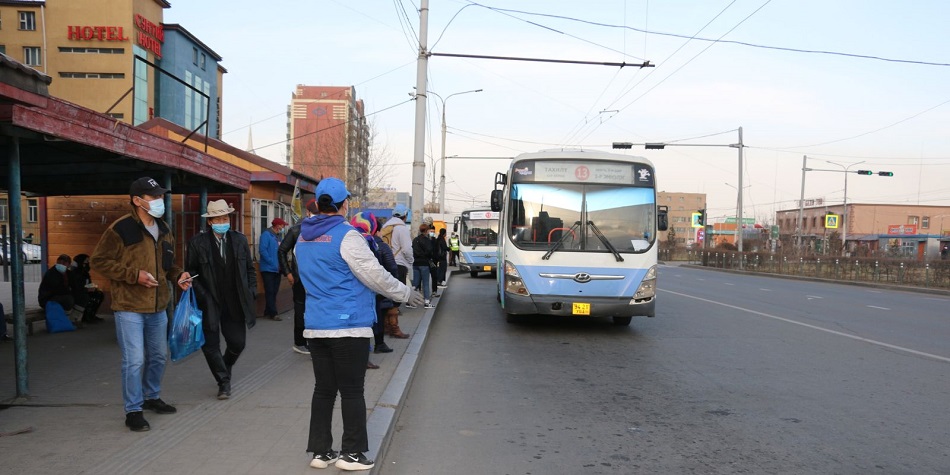 Гамшгаас хамгаалах бүх нийтийн бэлэн байдлын зэрэгт шилжсэн хугацаанд нийтийн тээврийн үйлчилгээний цагийн хуваарийг тусгай горимд шилжүүлсэн. Мөн нийтийн тээврээр зөвхөн хязгаарлалт тогтоохгүй төрийн байгууллага, хуулийн этгээдийн ажилтан, алба хаагчдыг халдвар хамгааллын дэглэмийг мөрдүүлэн зорчуулах, хяналт тавих ажлыг зохион байгуулж байна. Дөрөвдүгээр сарын 23-нд хөдөлгөөнт болон суурин 17 байршилд Авто тээврийн хяналтын 17 улсын байцаагч, 43 байршилд Нийтийн тээврийн үйлчилгээний газрын 52 албан хаагч, 116 байршилд “Сити баз консалтинг” ХХК, “Зорчигч тээврийн нэгтгэл”, “Зорчигч тээвэр гурав” ОНӨААТҮГ-ын 175 шалгагч ажиллаж, иргэдийг халдвар хамгааллын дэглэмийг мөрдүүлэн зорчуулж, хяналт тавьж буй юм.